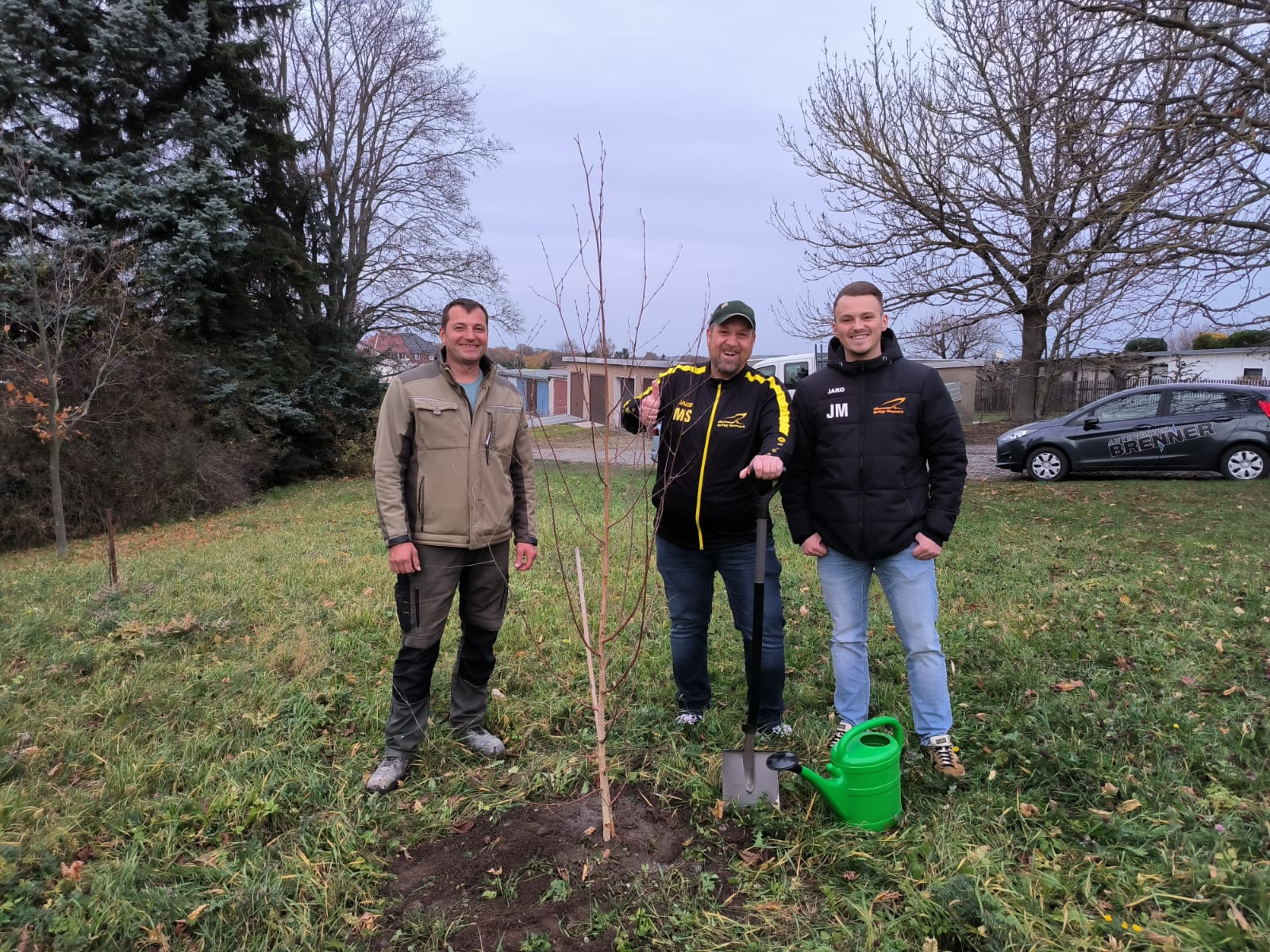 Am 16.11.2025 war es soweit: Unser Baum wurde fachgerecht gepflanzt. Wir danken der Fa. Kuhn Garten- und Landschaftbau aus Neumark für das Sponsoring des Baums und die Hilfe beim Pflanzen.